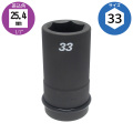 25.4mm角のインパクトレンチ対応の自動車用ロングソケットです。中型・大型トラック・バス(いすゞ・UD・日野・三菱ふそう等の新ISO方式ホイール10穴)の33mmアウターナットに対応したサイズです。