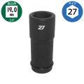 19mm角のインパクトレンチ対応の自動車用ロングソケットです。ライトトラックの二面幅27mmホイルナット脱着などに