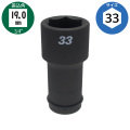 19mm角のインパクトレンチ対応の自動車用ロングソケットです。中型・大型トラック・バス(いすゞ・UDトラックス・日野・三菱ふそう等の新ISO方式ホイール10穴)の33mmホイルナット脱着に対応したサイズです。