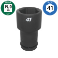 19mm角のインパクトレンチ対応の自動車用ロングソケットです。中型・大型トラック・バス(いすゞ・UD・日野・三菱ふそう等のJIS方式ホイールナット6穴または8穴)の六角41mmアウターナットに対応したサイズです。アルミ/スチール変換サービスナットが使用されているなど、インナーの突き出しが長い場合にもご使用可能で便利です。