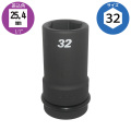 25.4mm角のインパクトレンチ対応の自動車用ロングソケットです。中型・大型トラック・バス(いすゞ・UD・日野・三菱ふそう等のISO方式ホイール)のアウターナット32mmに対応したサイズです。