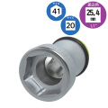 通常のコンビソケットWBQよりも外径を極限まで細くし、ホイールに接触しないようにしてある薄型コンビソケットです。日野などの小型トラック(1トンから4トン JIS方式5穴または6穴)の六角41mmアウターナットと四角20mmインナーナットに対応したサイズで、アルミホイールにお勧めです。